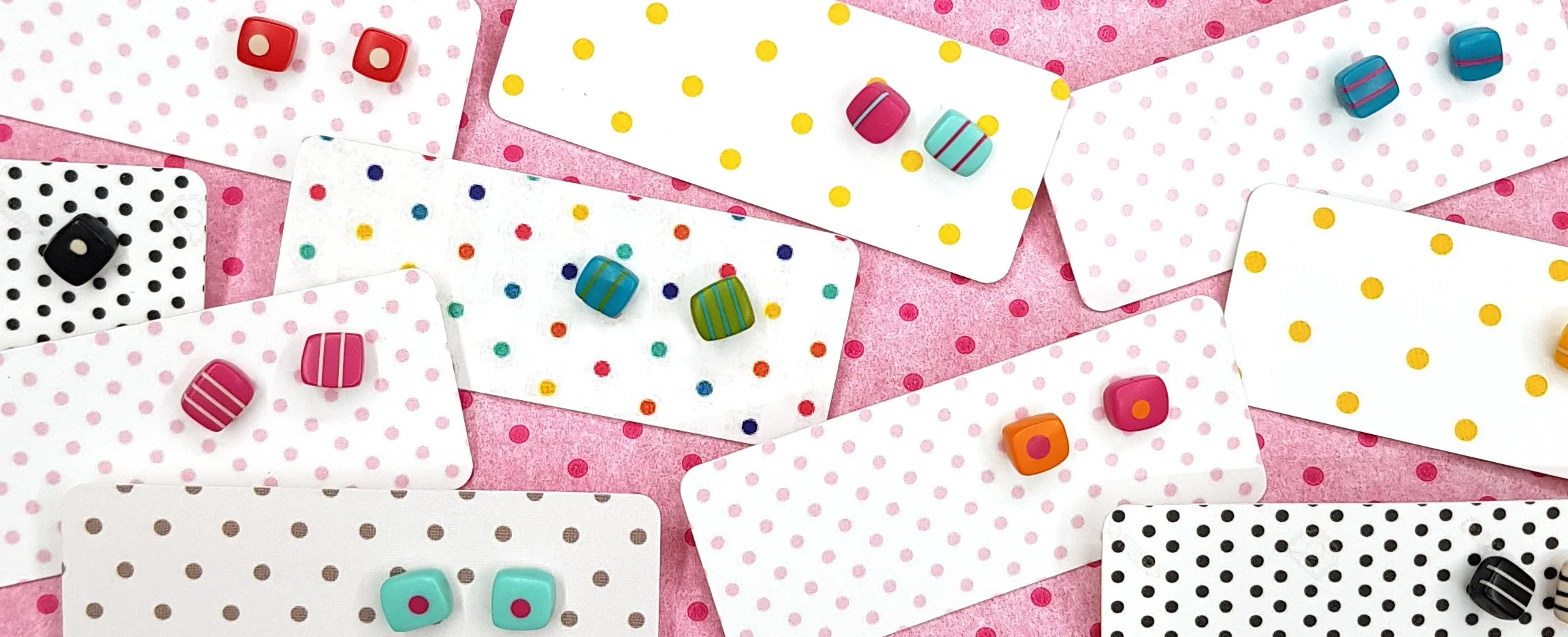 Your Mini studs will arrive beautifully wrapped in polka dot tissue paper, in a KAZ pillow box, tied with ribbon.