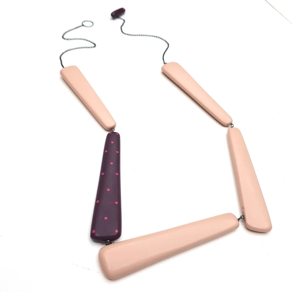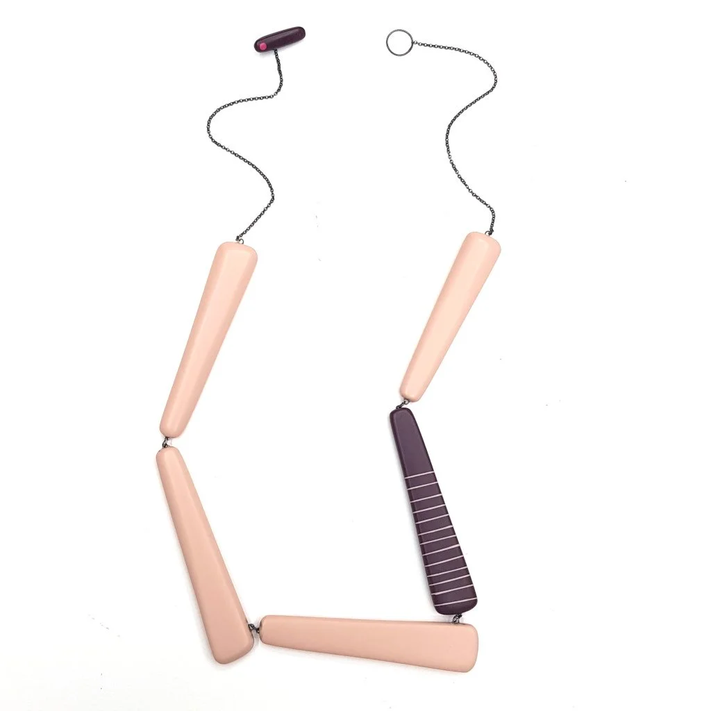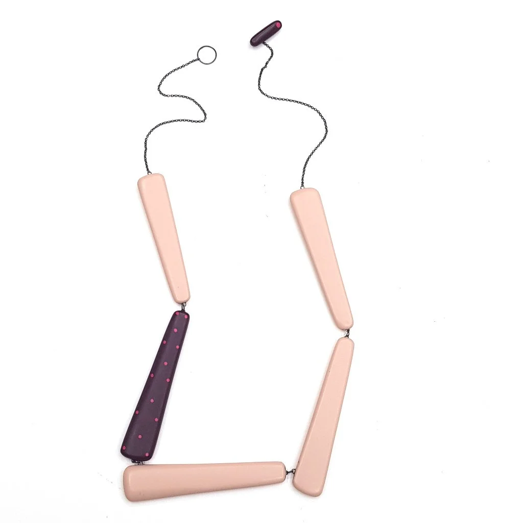 The length of the necklace is 27 1/2 inch, with a matching resin t-bar design.