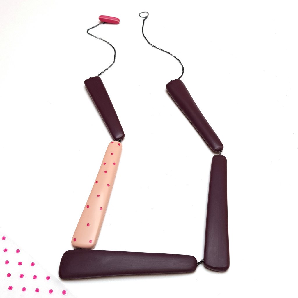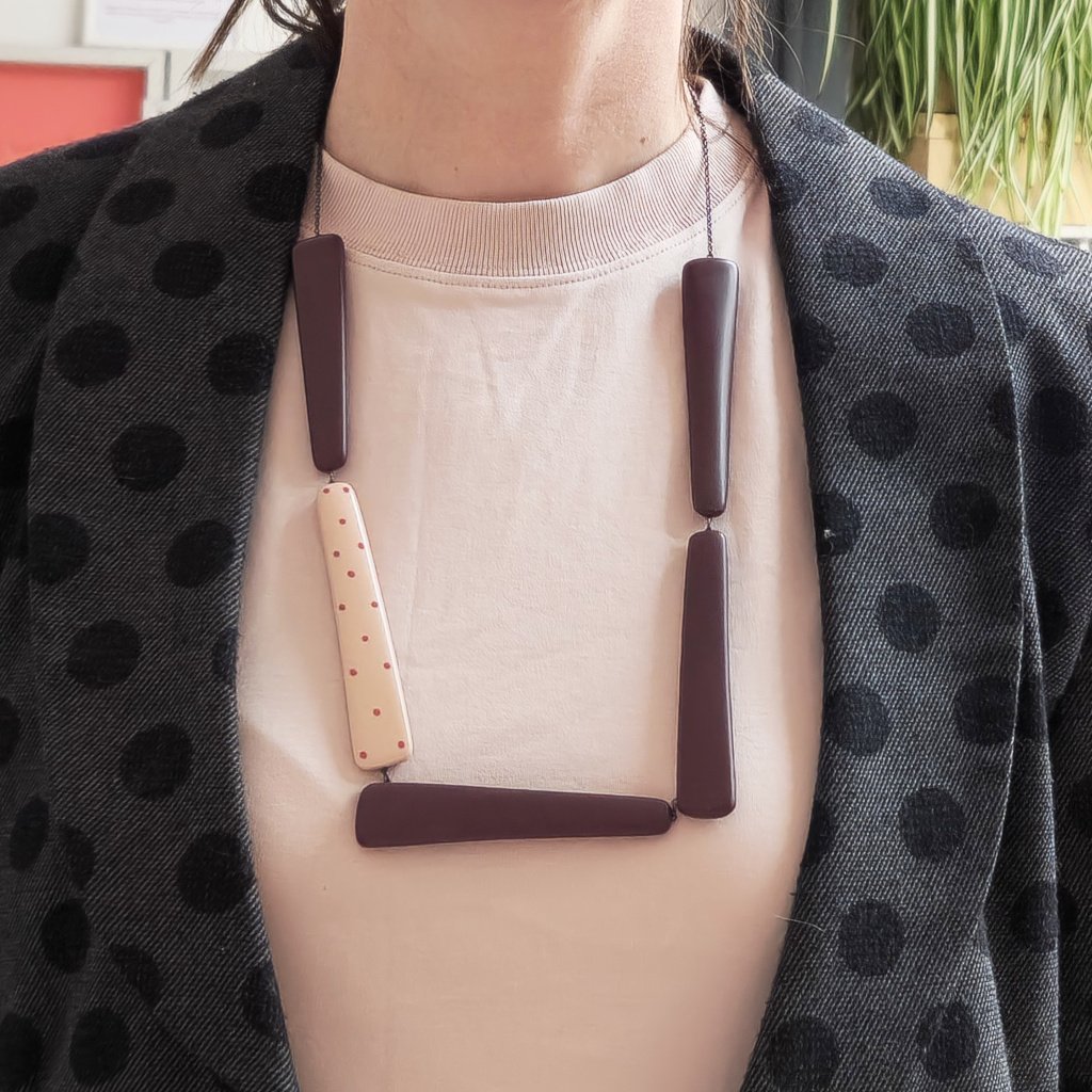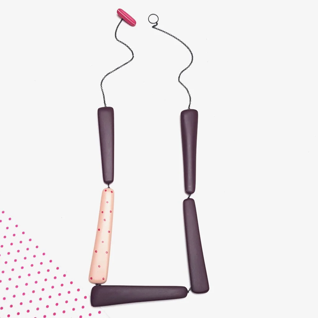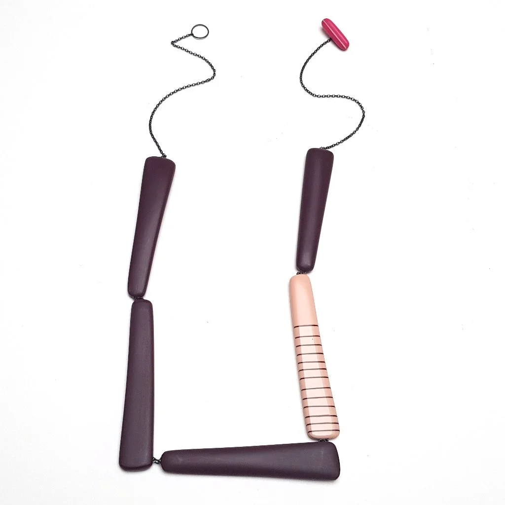 The length of the necklace is 27 1/2 inch, with a matching resin t-bar design.